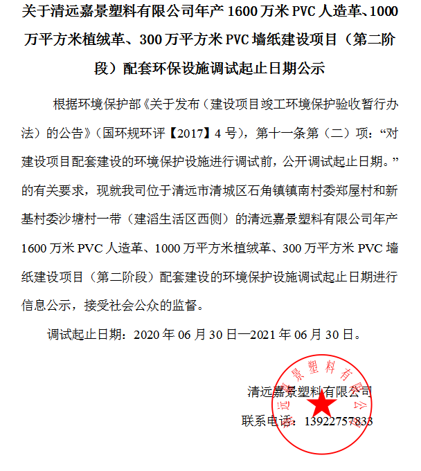 下一頁: 關于清遠嘉景塑料有限公司年產(chǎn)1600萬米PVC人造革、1000萬平方米植絨革、300萬平...